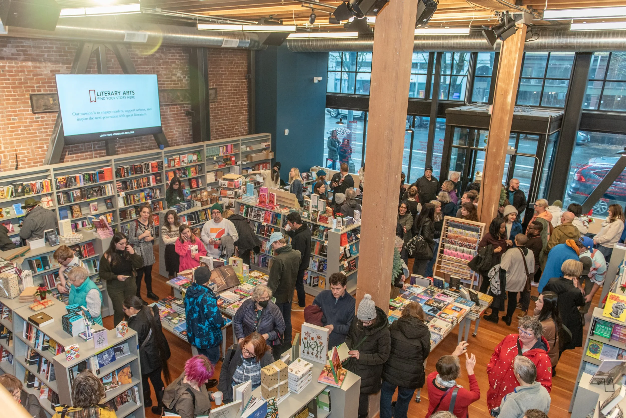 The space itself tells a story. Housed in a historic 1904 building (originally Strowbridge Hardware), the 14,000-square-foot headquarters features exposed brick, original floors, and the kind of architectural character you don't find in newer construction. The Literary Arts Bookstore opened in December 2024, followed by the café in June 2025, and together they've created what might be the most program-rich literary space in the city.